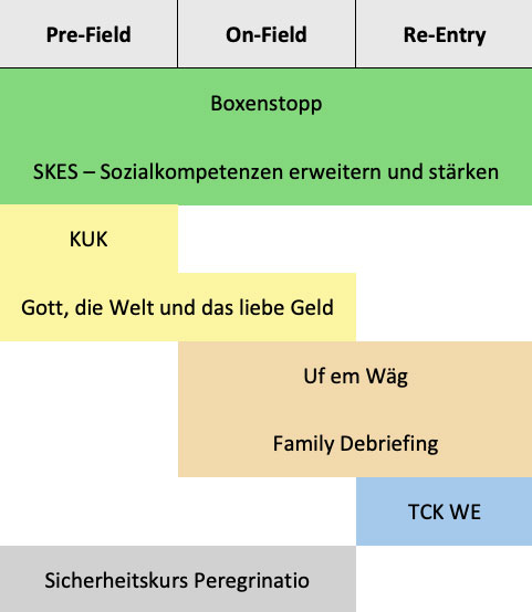 Du lernst, was Kulturen ausmachen, wie man einen Kulturschock konstruktiv bewältigen kann und was es braucht, um in einem völligen neuen Umfeld ganzheitlich gesund zu bleiben. Du setzt dich mit deinem Glauben auseinander und lernst Konfliktlösungsstrategien kennen. Und du erfährst, wie man nach der Rückkehr aus dem Ausland wieder Fuss fassen kann in der eigenen Kultur.